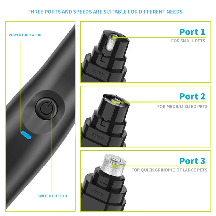 1. Les tailleurs d'ongles 1.Electriques sont plus sûrs et plus efficaces. Ils peuvent rapidement couper les ongles et rendre les ongles plus ronds et plus lumineux. 2.Equimités avec un couvercle de protection de sécurité, vous pouvez choisir le port et la vitesse appropriés en fonction de la taille de l'animal. Le port 1 convient aux petits animaux de compagnie, le port 2 convient aux animaux de compagnie de taille moyenne, le port 3 convient aux grands animaux de compagnie et les trois ports conviennent à la polissage des ongles de différents animaux de compagnie. 3.La la tête de polissage de diamants est plus efficace que les ciseaux pour couper les ongles d'animal de compagnie, et il peut réduire le risque de raccourcir les griffes ou de blesser l'animal, et la tête de polissage de diamant est amovible et plus durable. 4.Noise est contrôlée en dessous de 50 décibels, une conception de bruit faible, de sorte que votre animal de compagnie n'a plus peur. 5.La partie de la poignée adopte la conception ergonomique, elle peut absorber le choc, se sentir bien et ne vous blessera pas lorsque vous êtes utilisé depuis longtemps. 6.Il peut être complètement chargé dans environ 5 heures. Après complètement chargé, il peut être utilisé pendant une longue période et le temps de travail est de 5 heures maximum. Et la charge USB est plus pratique et commode. 7.Input: 50Hz AC100V-240V / 60Hz 8. Capacité de cuisson: 800 mAh